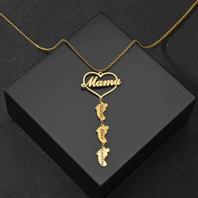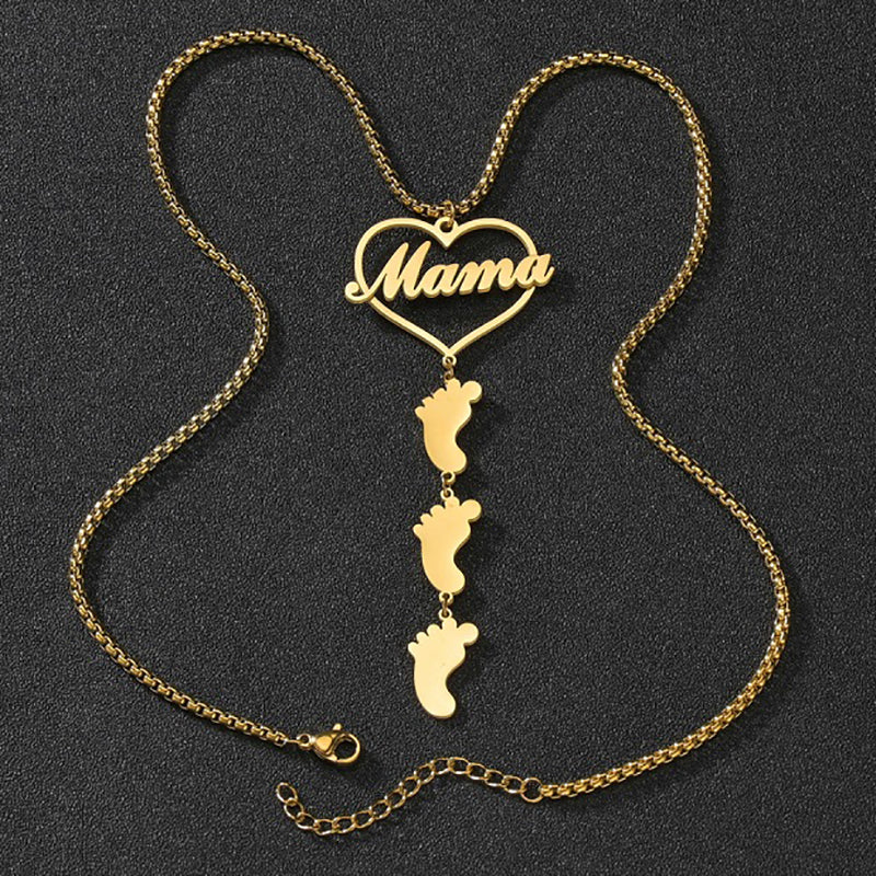 Porque mamá siempre está ahí para ti, cuidando de la familia y mostrándote el camino con una paciencia infinita, regálale este increíble collar de mamá con pies de bebé.